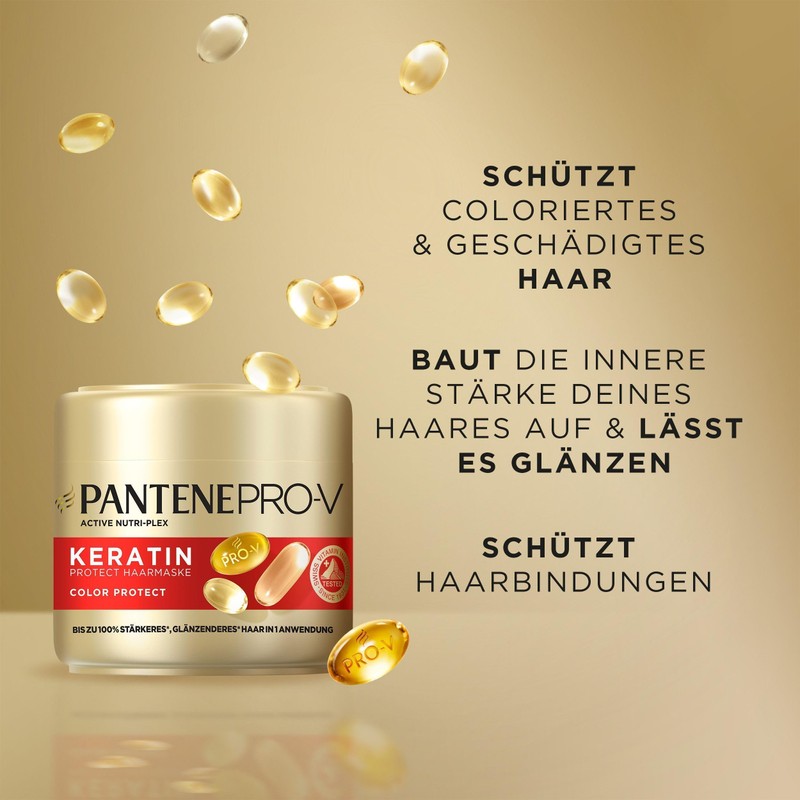 - Improved protection of hair bindings: the intensive mask with the Pro-V formula and Active Nutri-Plex is enriched with 50% more active ingredients that protect hair ties and nourishes dyed and highlighted hair