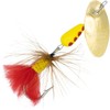 - 🐟 ✅ TEARDROP SPINNERS : ✅ Weighted body casts like a bullet. The gold blade yellow body with red dots is our second most popular blade/body combination. The brown-yellow fly with fluffy red tail is another unbeatable dressing combination.