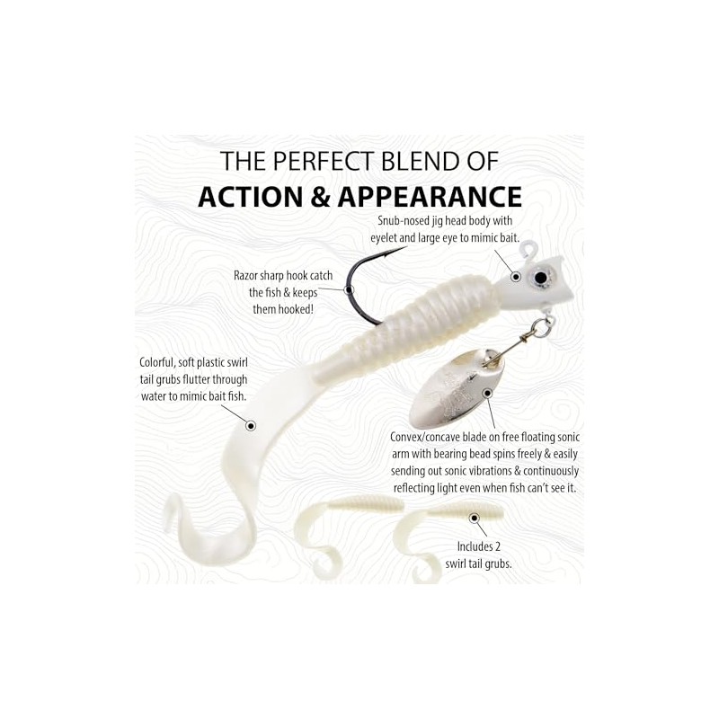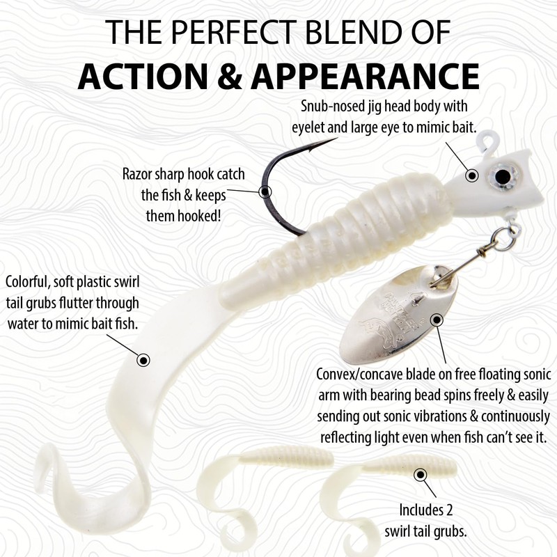 - When rigged with one of the two Swirl tail grubs that are included, this lure also provides for a seductive, fluttering life-like action that drives fish to strike