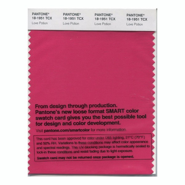 Actual 4x8 inch cotton fabric swatches of individual Pantone Fashion and Home colors. Each dyed cloth piece is folded back on itself to make a 4x4 inch two-ply presentation in a hermetically sealed UV protective envelope. Used by fashion designers and interior decorators to communicate with clients and vendors.