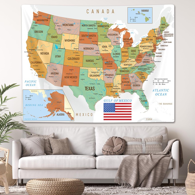 - Educational Design: Featuring a detailed map of the USA with national borders, this tapestry offers an educational and informative element to your room decor.