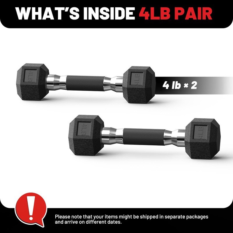 - UPGRADED RUBBER-COATED COMFORT GRIP: Engineered for security and comfort, our dumbbells feature a dual-layer grip: a solid chrome core wrapped in soft, non-slip rubber. The textured surface prevents slips even during sweaty workouts, while the ergonomic shape reduces hand fatigue. Whether you’re lifting heavy for strength training or using hand weights for toning, this design offers enhanced control and helps support a safer workout experience.