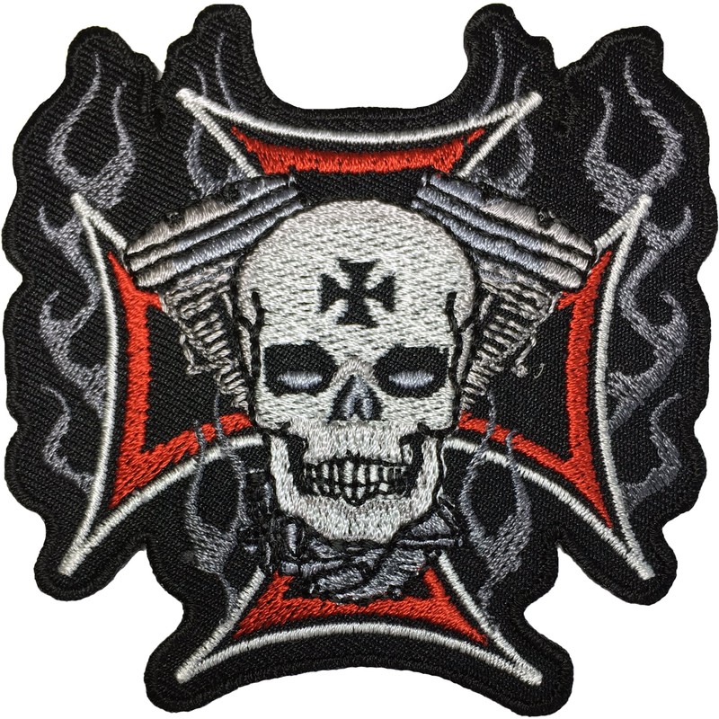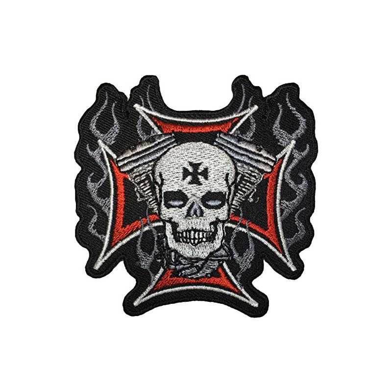 Papapatch Cross Motor Skull Motorcycle Biker Costume DIY Applique Embroidered Sew on Iron on Patch (IRON-ON-CROSS-MOTOR-SKULL)
