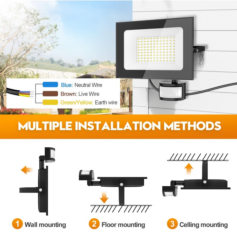 - IP66 waterproof: with protection class IP66, the floodlight can be used normally in various bad weather conditions such as rain, snow and flash. Suitable for indoor and outdoor lighting: perfect lighting for residential buildings, courtyards in commercial areas, garages, stadiums, etc.