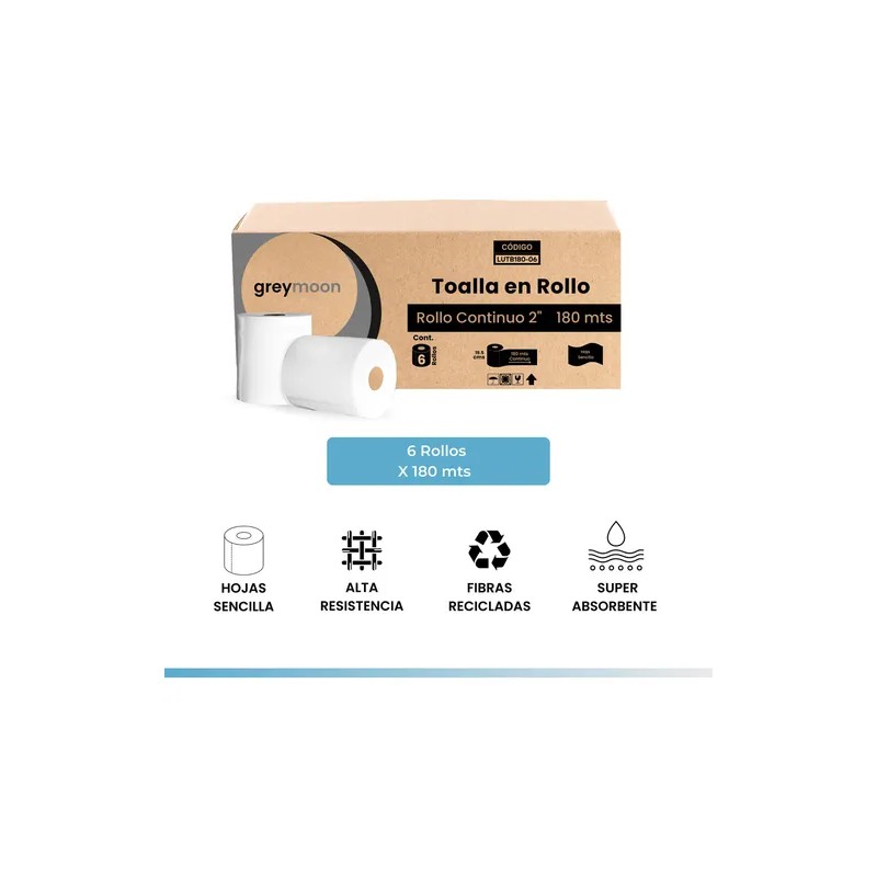 Título: Papel higiénico Greymoon Toalla en Rollo simple hoja 180 m de 6 u