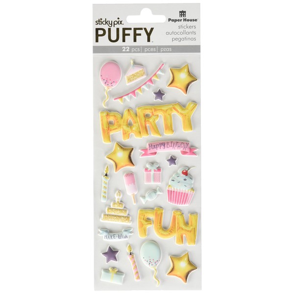 Paper House Productions Puffy Stickers, Party, 3-Pack, 3 Piece