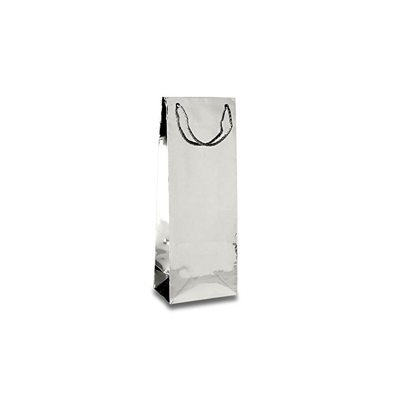 Paper Mart Bottle Metallic Silver Euro Bags | Quantity: 100 | Width: 5" Gusset - 3"