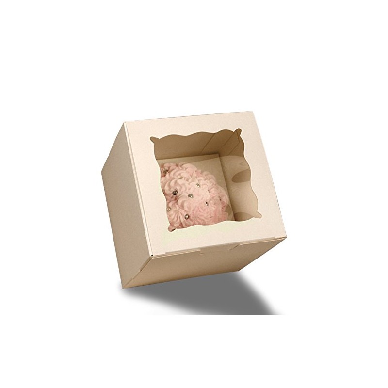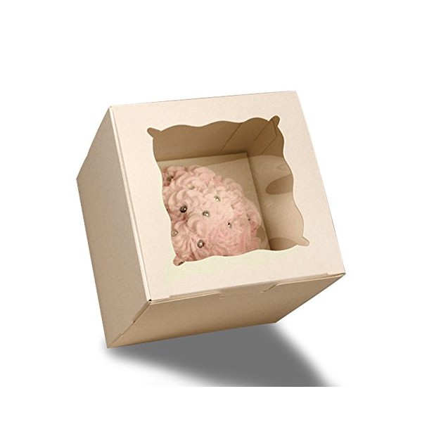 Ivory Window Cupcake Boxes | Quantity: 25 | Width: 4" - Ivory Window Cupcake Boxes are perfect for displaying and packaging one cupcake. The top of this cupcake box features a cut-out window with a clear plastic film that shows off the cupcake inside. Easy to take out cupcake without messing up frosting.