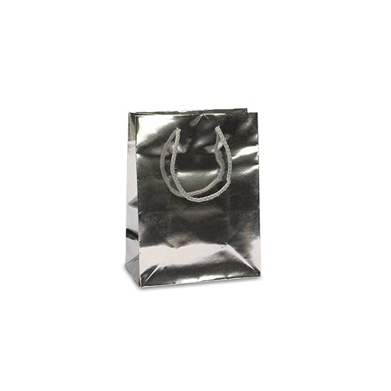Metallic Silver Euro Bags | Quantity: 100 | Width: 6 1/4" Gusset - 3 1/2" - Metallic Silver Euro Bag is a metallic gift bag with a loose rope handles. These gift bags are made of premium coated papers and shine brightly. These paper eurototes are wonderful for packaging gifts.