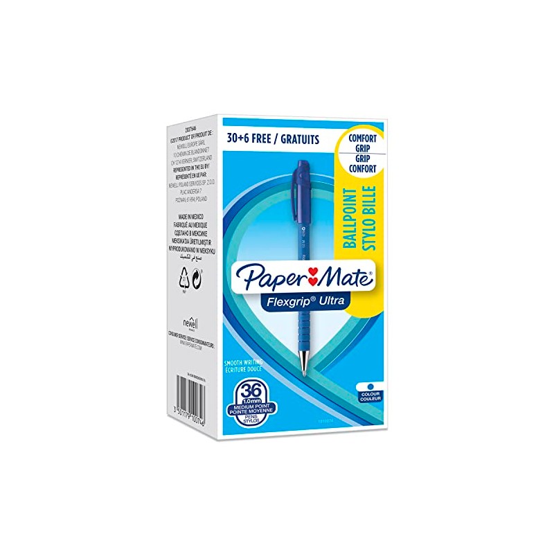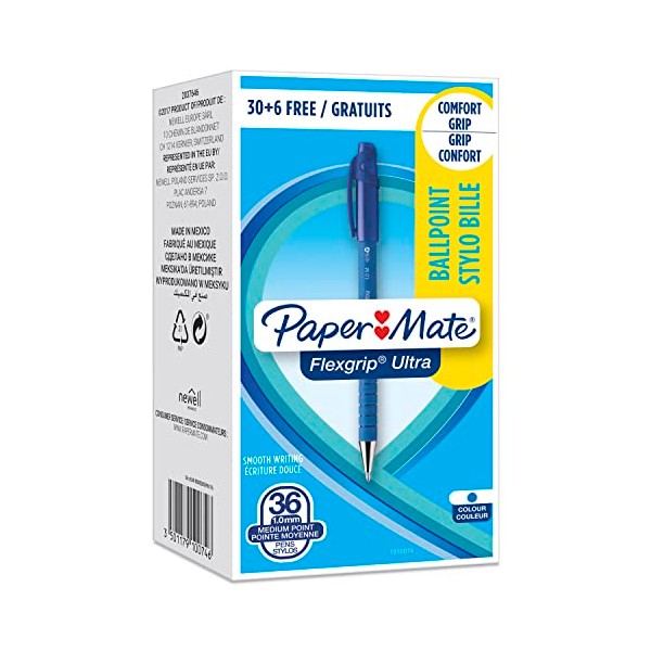 Paper Mate Flexgrip Ultra Ballpoint Pens - Medium Point (1.0mm) - Blue - 36 Count