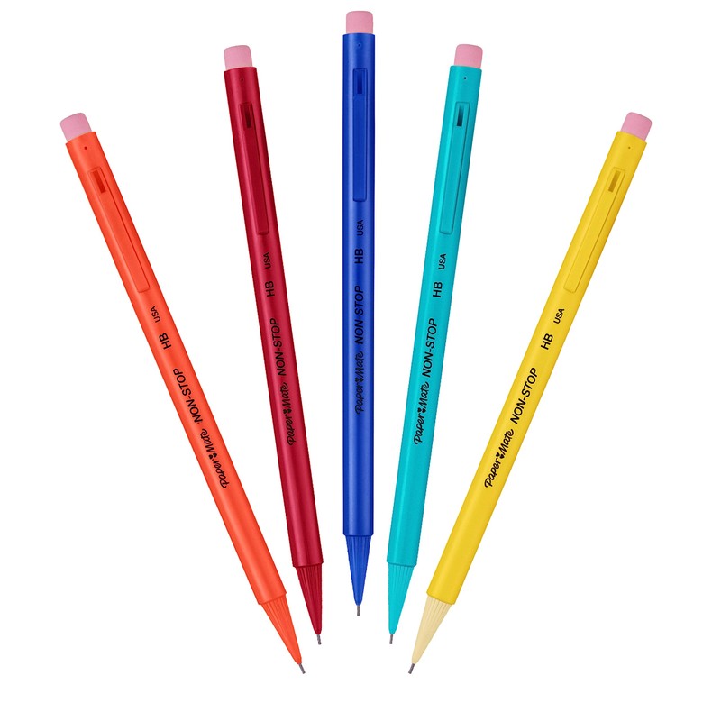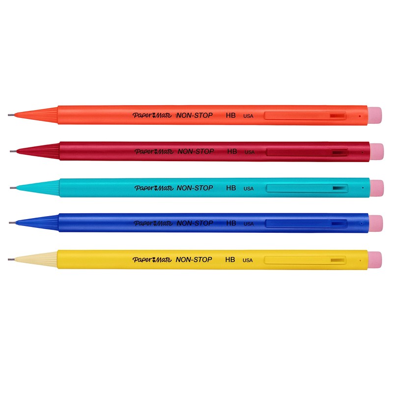 Paper Mate Non-Stop Mechanical Pencil | 0.7mm with Shock-Absorbing Tip | HB #2 | Assorted Barrel Colours | 10 Count