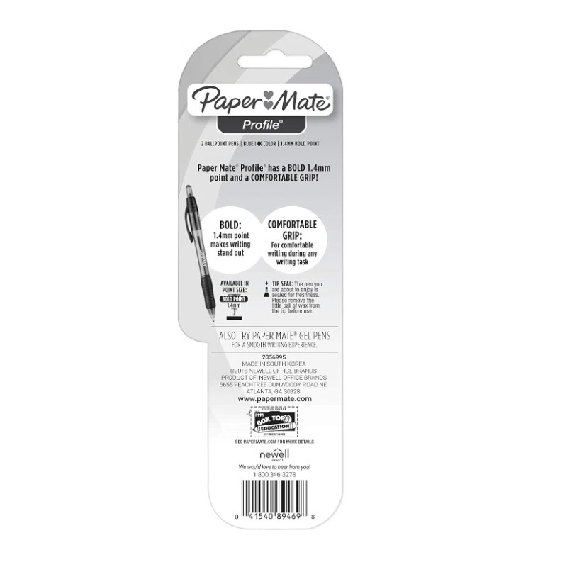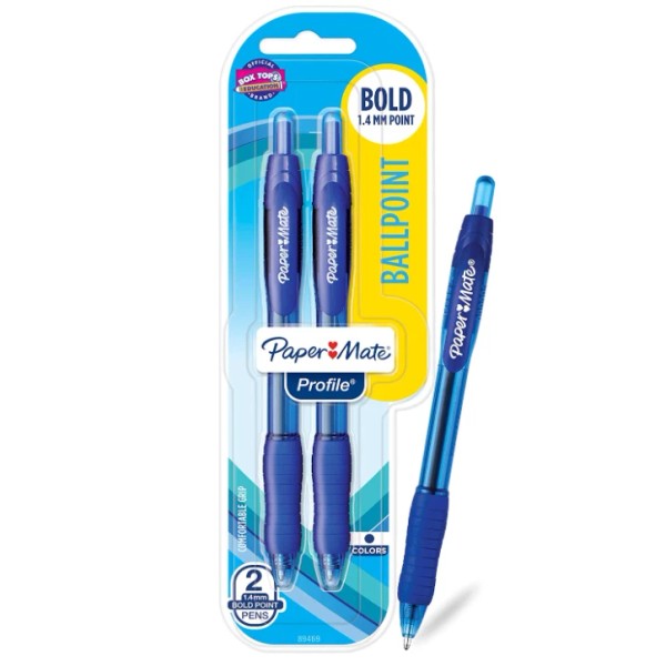 Paper Mate pack 4-Paper Mate Profile Retractable Ballpoint Pens, Bold (1.4mm) Blue, 4 Count