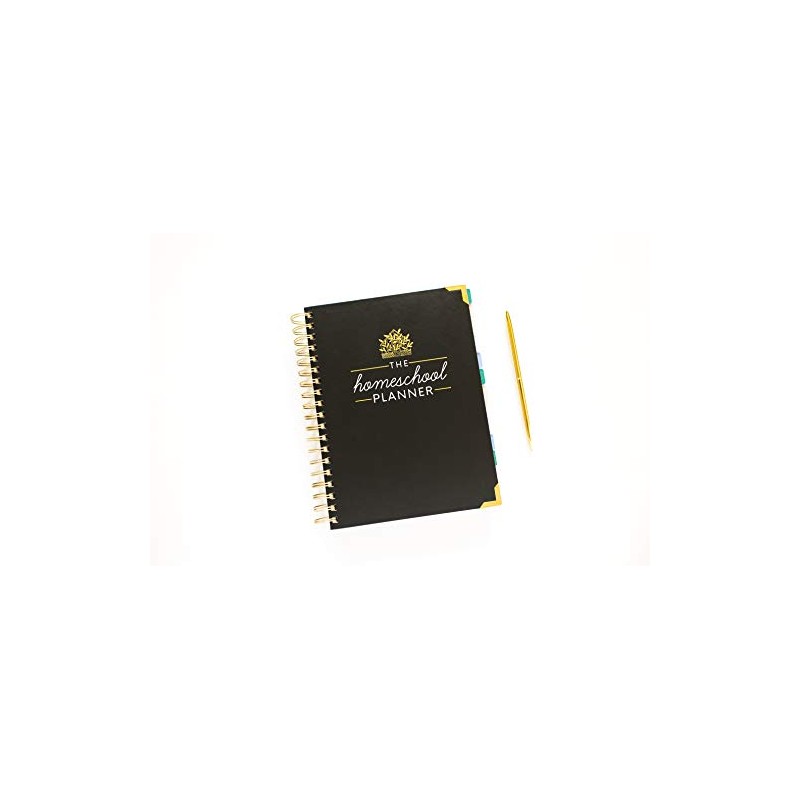 The Homeschool Planner includes: 192 pages printed on high quality interior stock Monthly tabs Undated (so that you can start at anytime!) sections Clean & simple layout Beautiful hardback cover with gold spiral and corner protectors 7.25 in. x 9.75 in.