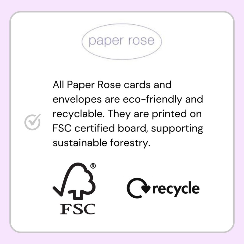 - PAPER ROSE: A premium UK card company with a reputation for beautiful, high quality designs. Their commitment to sustainability is reflected through their use of high quality, environmentally friendly materials including plastic-free glitter.
