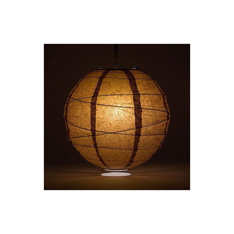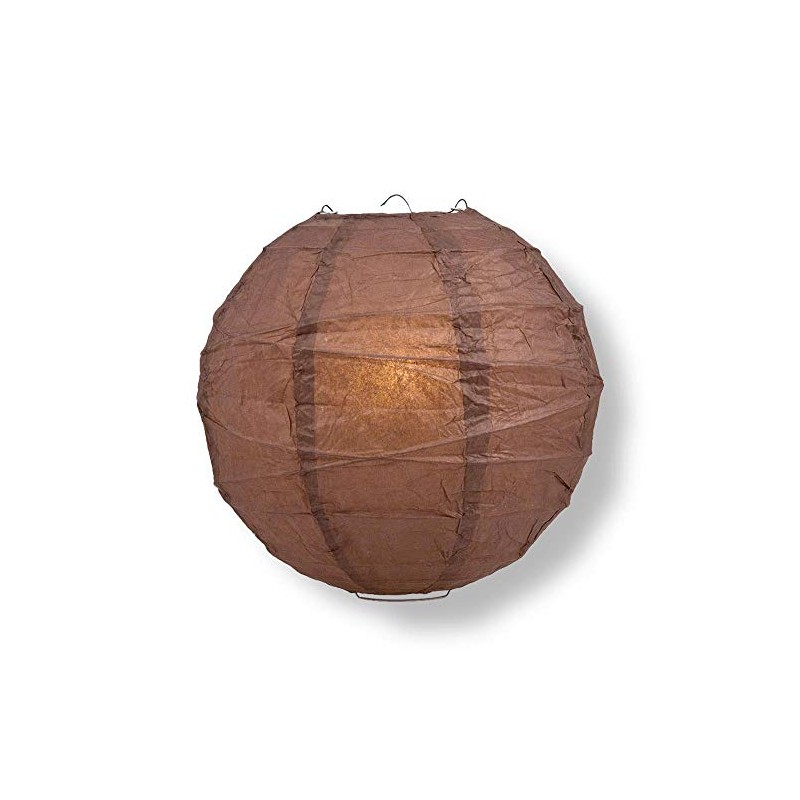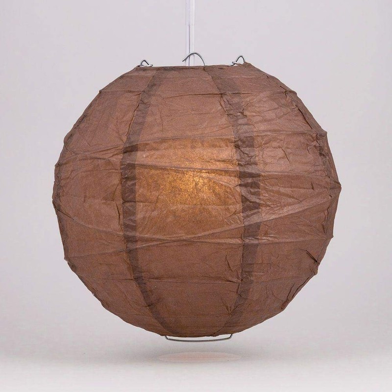 PaperLanternStore.com 20 Inch Brown Round Paper Lantern, Crisscross Ribbing, Hanging Decoration