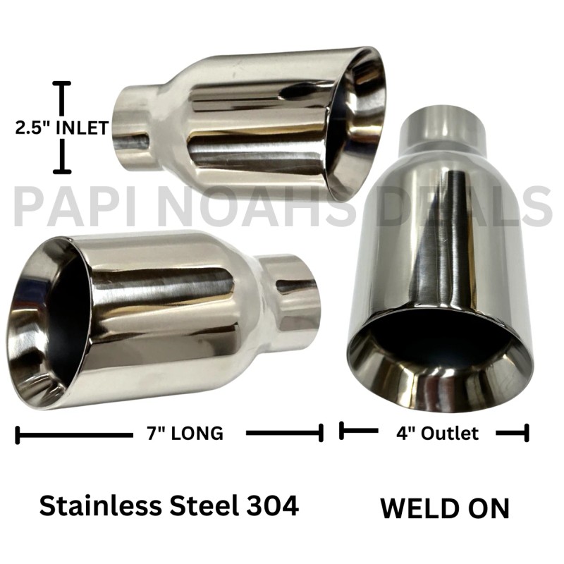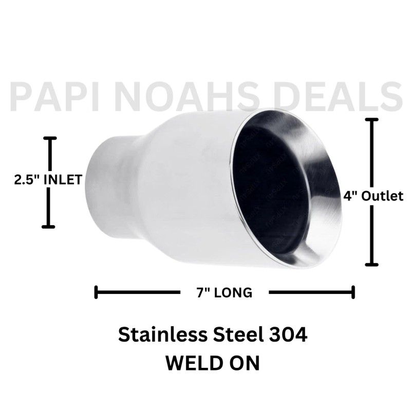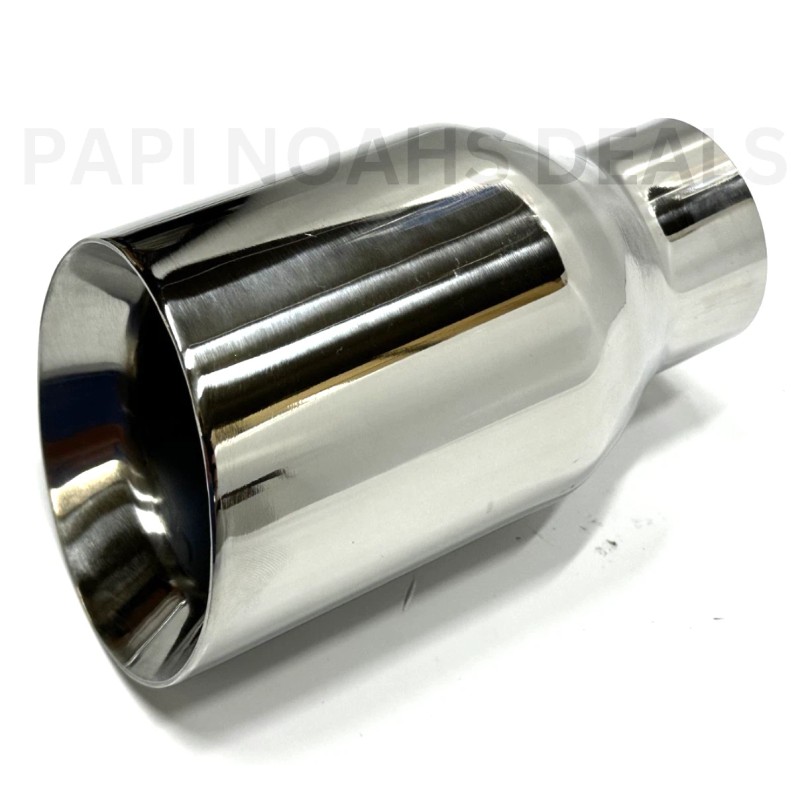 Papi Noah Polished Stainless Steel Exhaust Tip 2.5" In 4" Out Double Wall Angle Cut 7" L