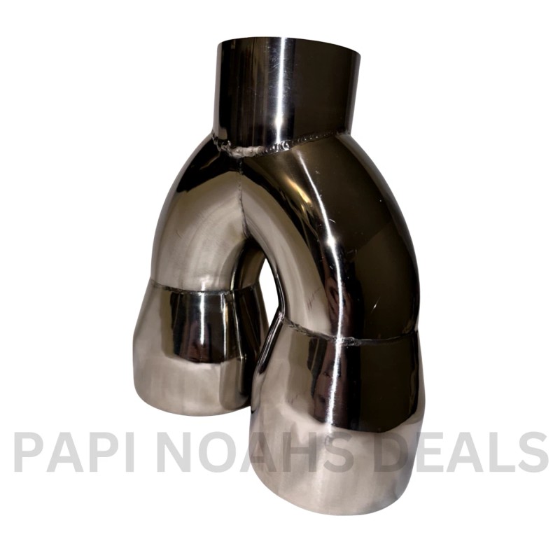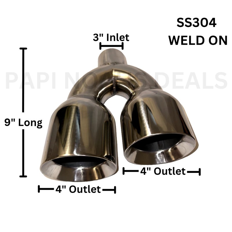 Papi Noah Twin 4" Outlet 3" Inlet 9" Long Stagged Dual Wall Stainless Steel Exhaust Tip