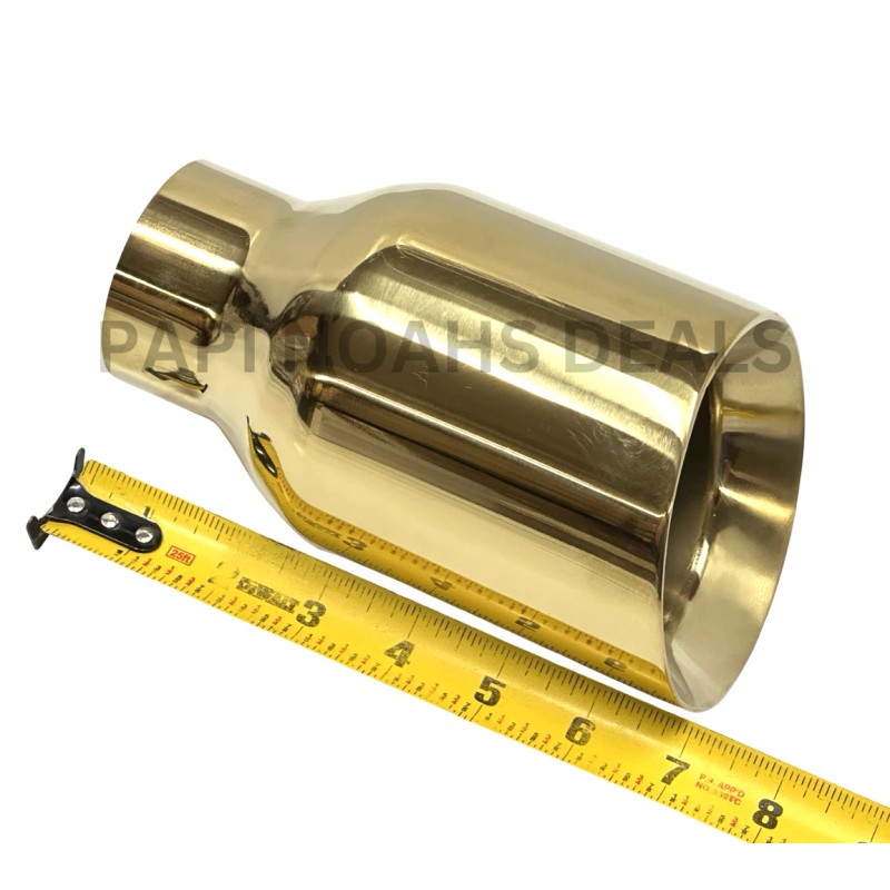 PAPI NOAHS DEALS Gold 4" Out 2.5" In Dual Wall SS304 Stainless Steel Exhaust Tip 7" Long Round