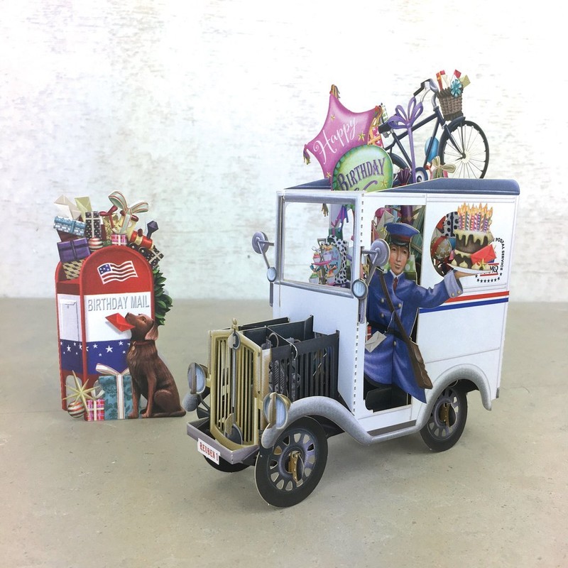 - Wunderschöne Papierkunst zum Leben bringt der amerikanischen Postman und seinen Wagen. Der 3D-Pop-Up-Karte faltet sich flach für Versand und verfügt über eine große Geschenkanhänger für Ihre eigenen Geburtstag Nachricht.