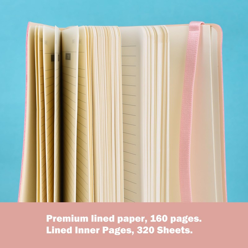 - HIGH-QUALITY PAPER: 320 ruled pages made with premium 100gsm paper that provides smooth writing experience with minimal bleed-through PRACTICAL FEATURES: Includes an elastic band closure to keep contents secure and pages protected while on the go AMPLE SPACE: 320 lined pages offer plenty of room for journaling, note-taking, planning, sketching, or creative writing