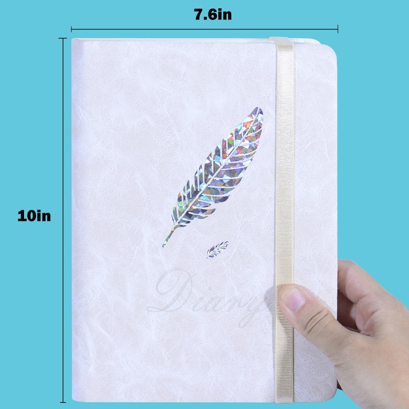 - PREMIUM DESIGN: Beautiful leather-look journal featuring an elegant feather design and yellow elastic band closure for secure storage GENEROUS SIZE: Measures 7.6 x 10 inches, perfect for extensive writing sessions while remaining portable and easy to carry