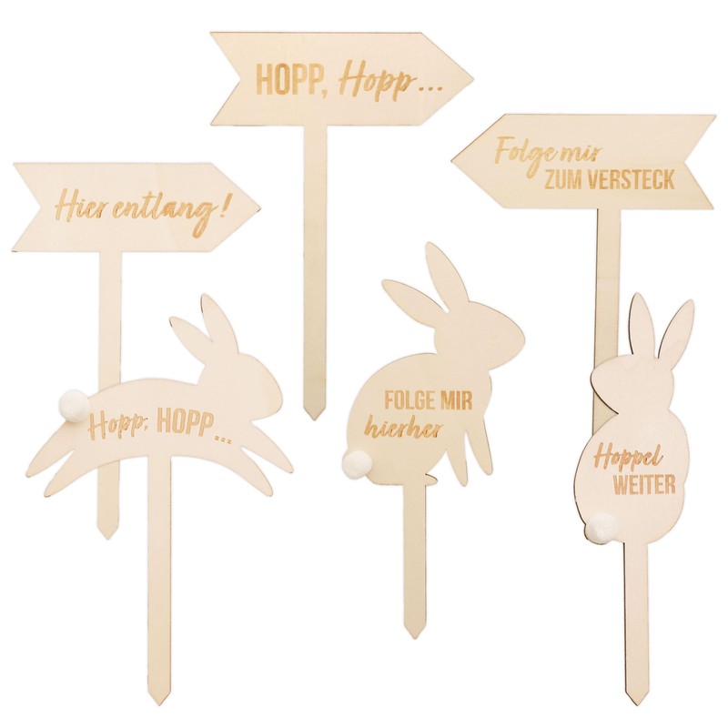 Give your Easter decoration a natural and playful touch with our 6-piece Easter egg hunt wooden set 1. These lovingly designed wooden stands with handmade pom pom details are the ideal addition to your Easter party or decoration.