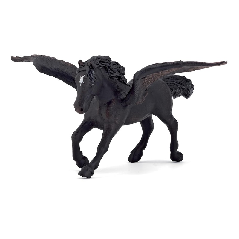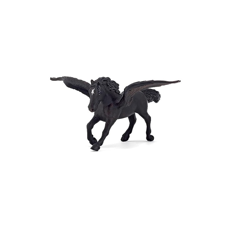 This black Pegasus has a white star on his forehead. He is completely black, even his wings. Perfect for various fairies and elves to ride from the Papo Collection. More than 15 years ago, Papo decided to create princesses, dragons and knights. They strive to manufacture long-lasting, beautiful toys. Quality of the design and materials used remains their main concern. Another special characteristic of their figurines is the care in the details and postures, which gives the impression that the figurines are animated. Each are hand painted and are manufactured to very strict specifications. Lastly, Papo figures are created to assist the support of play and development. The diversity of their products and the interaction of different worlds also stimulate the creativity and imagination of children of all ages.