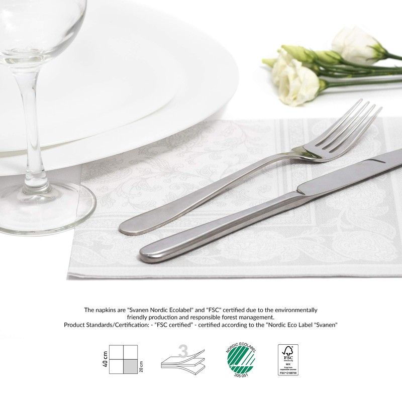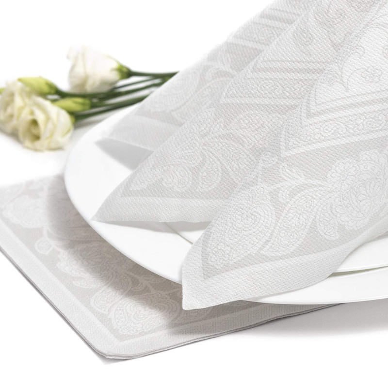 Papstar Royal Collection 11682 Serviettes 40 x 40 cm with 1/4 Fold Pack of 50 White with Ornamental Design