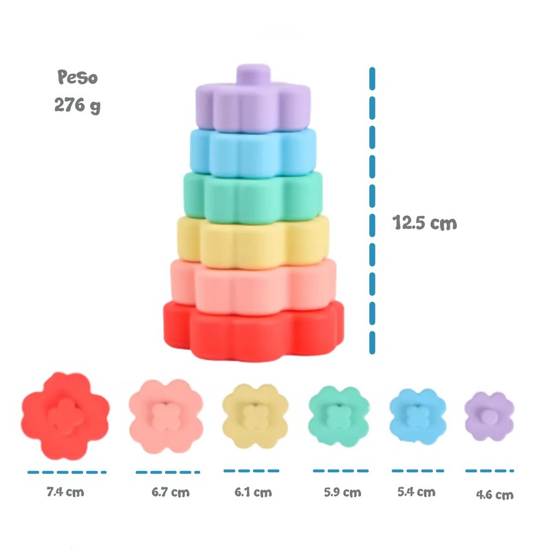 PAPU BABY Juguete en Forma de Flor apilable y de construcción 100% de silicón Grado alimenticio. Juguete para bebés y niños Estilo Montesori. Torre apilable. Stacking Tower. Libre de BPA (Básicos)