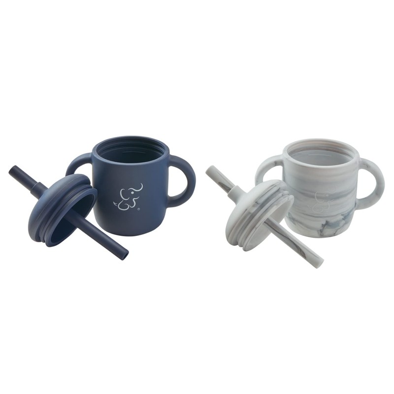 - Diseñados para manos y bocas pequeñas. La taza ayuda a que el bebé pase del biberón a la taza/vaso, lo que favorece el desarrollo oral y del habla saludable además ayuda con la dentición.