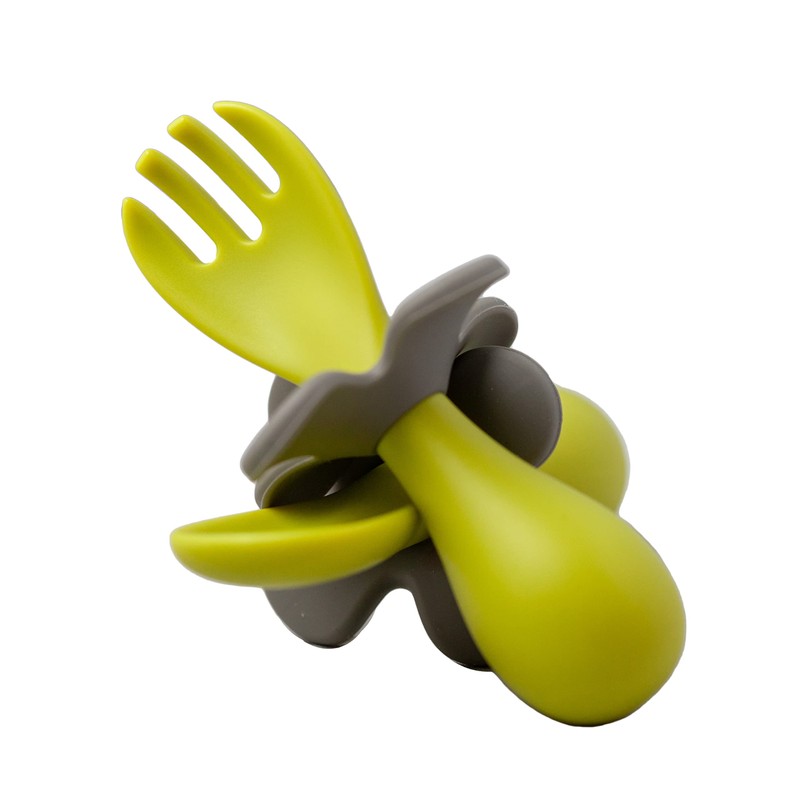 PAPU BABY Set de Cubiertos de entrenamiento para bebés. Cuchara y tenedor. Incluye estuche de viaje. (Verde)