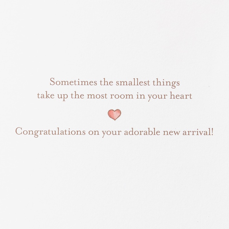- Inside Message: Sometimes the smallest things take up the most room in your heart. Congratulations on your adorable new arrival!