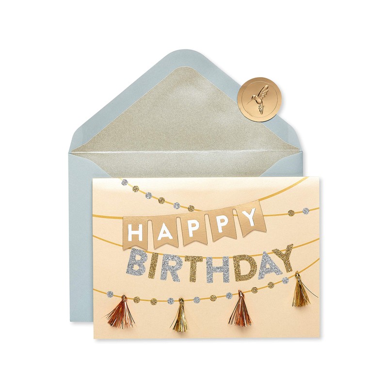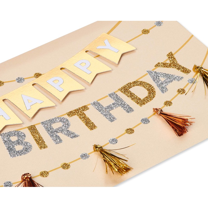 Make celebrations more amazing with uniquely crafted birthday cards from Papyrus! This tassel banner birthday card features metallic tassels and foil embellishments Coordinating envelope and a gold foil sticker help you deliver your message in style. With uplifting wishes and a metallic motif, it’s perfect for celebrating anyone, including a friend, co-worker or family member, like a daughter, son, granddaughter, grandson, niece and nephew. When you’re looking for extra-special birthday cards, Papyrus offers superior quality and exquisite craftsmanship every time!