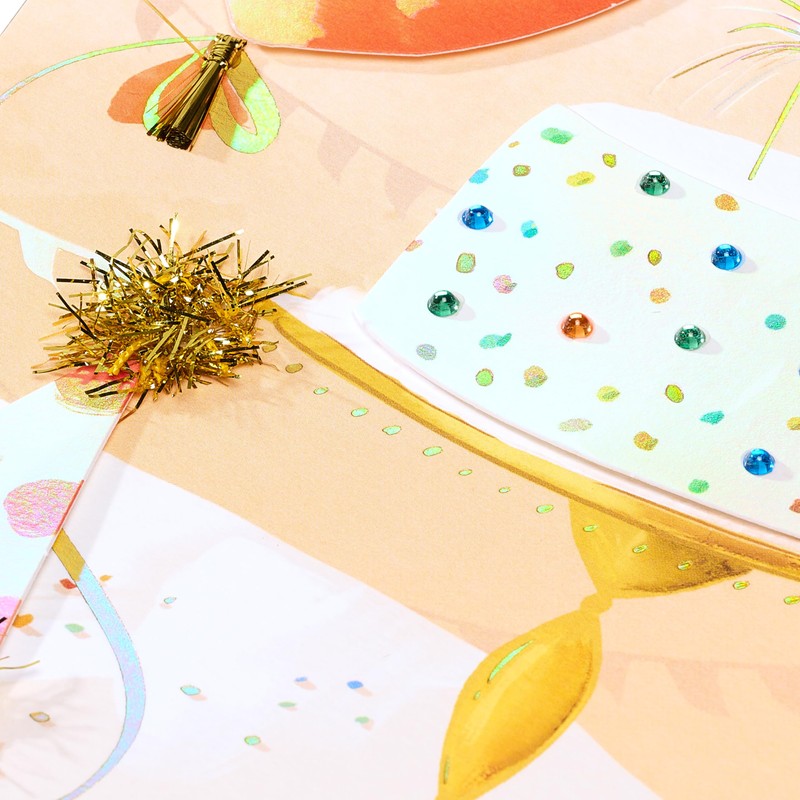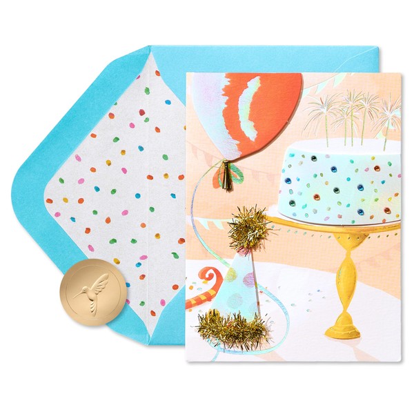 - Celebrate in style with this Papyrus birthday card that features shimmering foils, sparkling gems, a chord and tassel, and unique attachments
