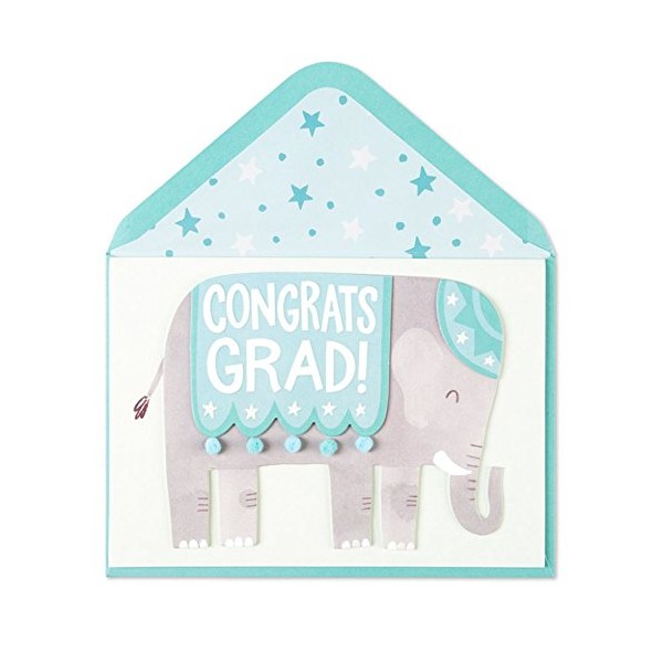 Papyrus always delivers high quality cards with artistic flair. This graduation card is no exception. Make a huge deal out of their accomplishment with this adorable card. A circus elephant is ready to deliver your congratulations to the grad.