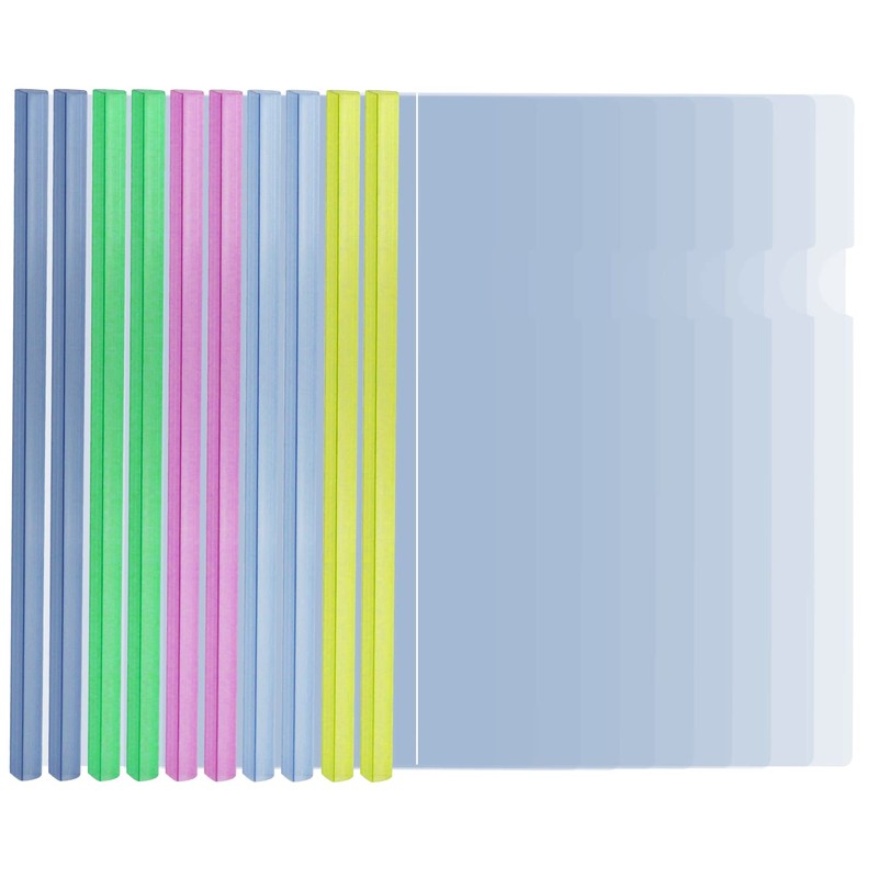 • El paquete incluye: 10 fundas transparentes y 10 barras deslizantes en este juego. 2 piezas por cada color, incluyendo rosa, azul, verde, amarillo y blanco. Te ayuda a mantener tus archivos organizados