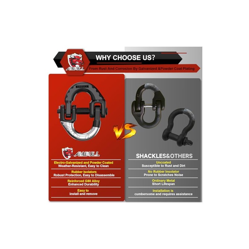 - EXCELENTE GARANTÍA: Te encantará este doble uso, no solo se utiliza como un enlace de acoplamiento de bloqueo de martillo, sino que también funciona bien como grilletes de cabrestante de remolque. AMBULL proporciona 12 meses de soporte adicional para cualquier problema de calidad, pídelo ahora sin preocupaciones