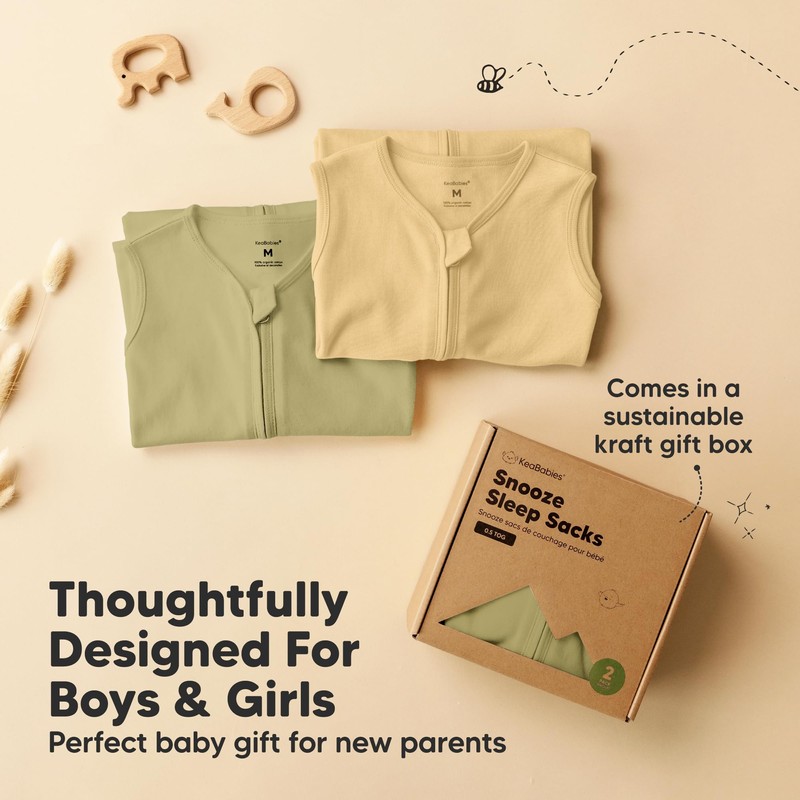 - Ergonómicos y seguros: el paquete de 2 sacos de dormir para bebé Snooze de KeaBabies está cuidadosamente diseñado para mantener a tu bebé seguro y cómodo mientras duermes. Estas mantas de longitud completa para bebé, con agujeros anchos para los brazos y zona de la cadera permiten un movimiento natural durante el sueño.