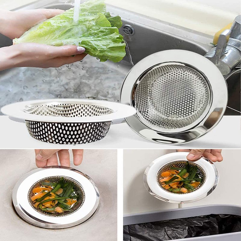 - Reutilizable: Hecho de acero inoxidable de alta calidad, este colador de fregadero es práctico y versátil, se adapta a la mayoría de los fregaderos de cocina estándar, así como a los fregaderos de baño y de servicios públicos.