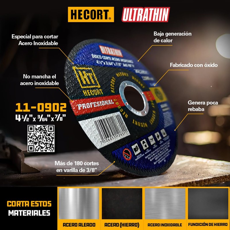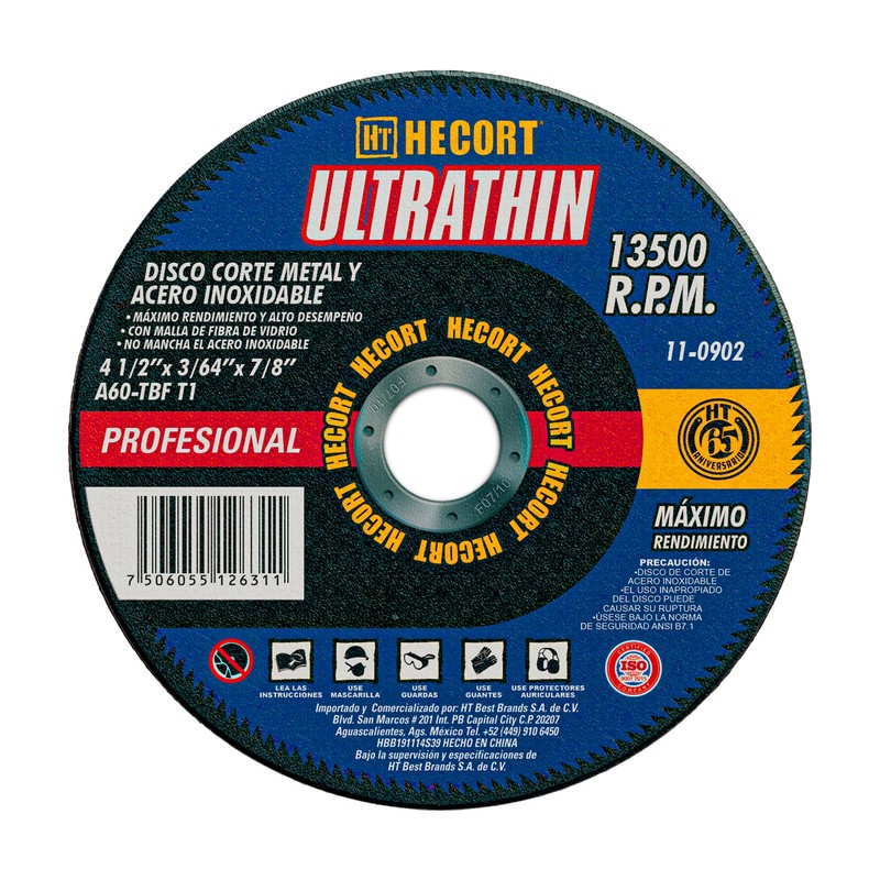Paquete de 50 Disco de corte Acero Inoxidable 4 1/2" x 3/64" x 7/8" A60-TBF T1
