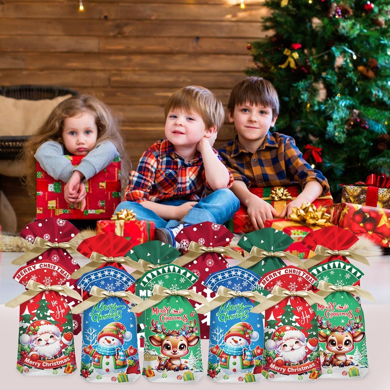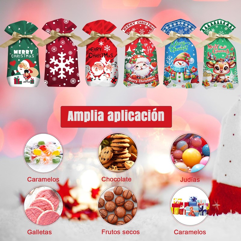 - 🎅Amplias aplicaciones:Las bolsas navidad dulces con cordón son ideales para empacar pan, galletas, dulces, panadería, aperitivos, palomitas de maíz, barras de dulces, golosinas, etc. Las bolsas de dulces de Navidad no solo son ideales para empaquetar galletas, dulces, pasteles, donas, sino que también son adecuadas para embalaje de regalos para decorar tu fiesta.