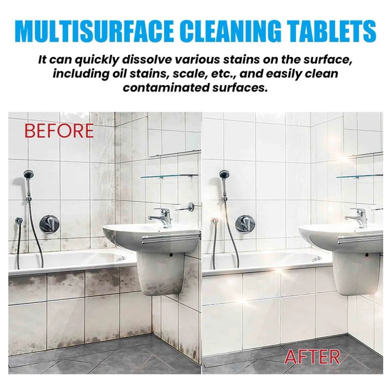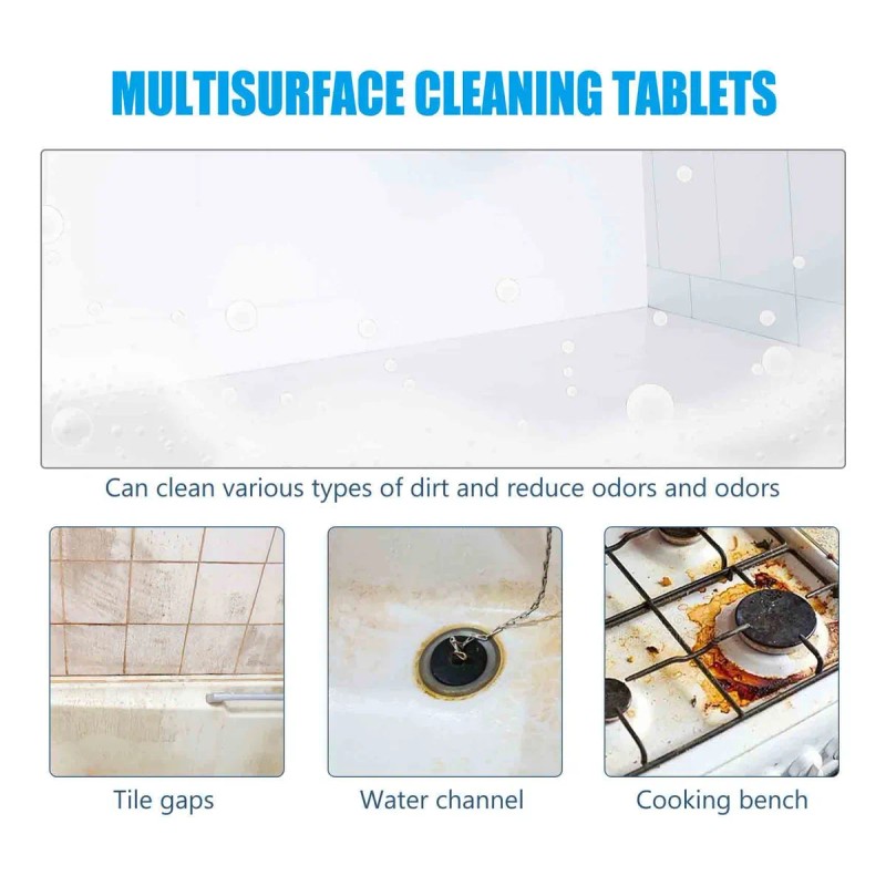 limpieza integral: las tabletas efervescentes de limpieza múltiple son adecuadas para una variedad de superficies, como estufas, azulejos, baños, cocinas, etc., y pueden eliminar eficazmente las manchas persistentes, dejando un aspecto nuevo.