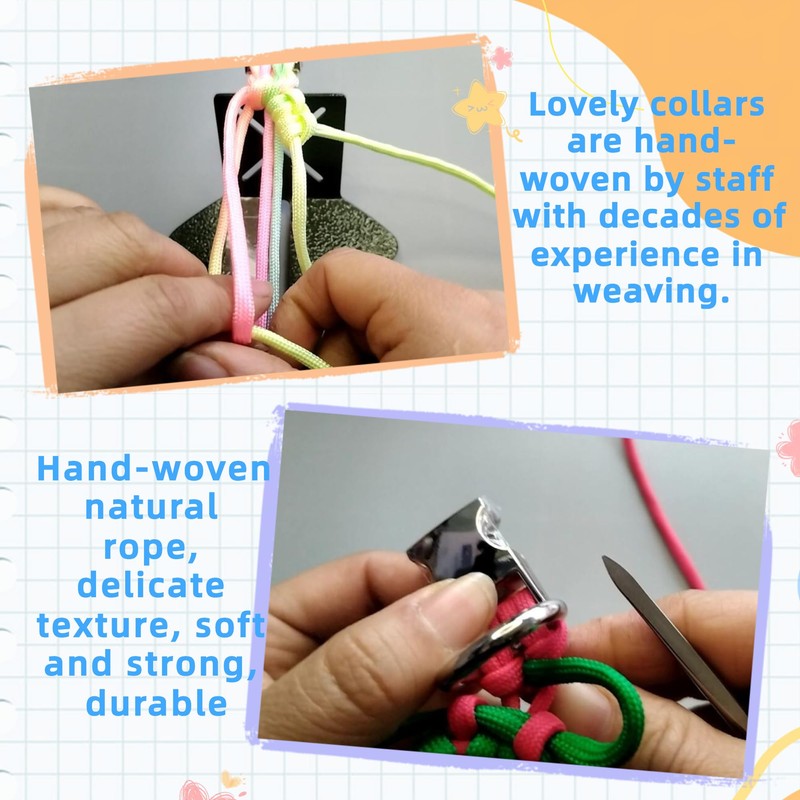 - 🐱【Hand Weave & Strong】It is done in a wide sanctified weave and will contain a minimum of 30 total feet of paracord depending on neck size. Our weaved dog collars can withstand 225 pounds of pulling tension,making them durable.