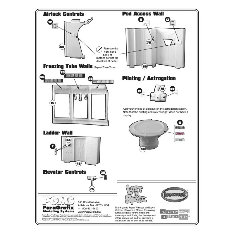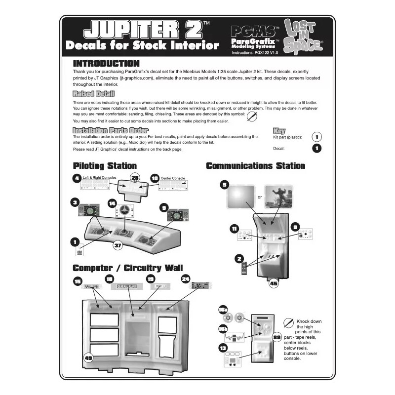 ParaGrafix Lost in Space - Jupiter 2 Decal Set for Stock Interior PGX122 For Moebius J2 Kit