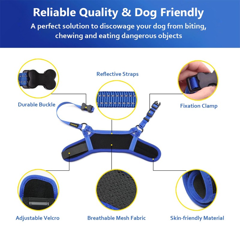 PARALL Dog Muzzle, Soft Mesh Muzzle for Medium Large Dog to Prevent Biting Barking Chewing, Adjustable Breathable Dog Muzzle with Reflective & Adjustable Strap Allows Panting and Drinking (Blue, XXL)