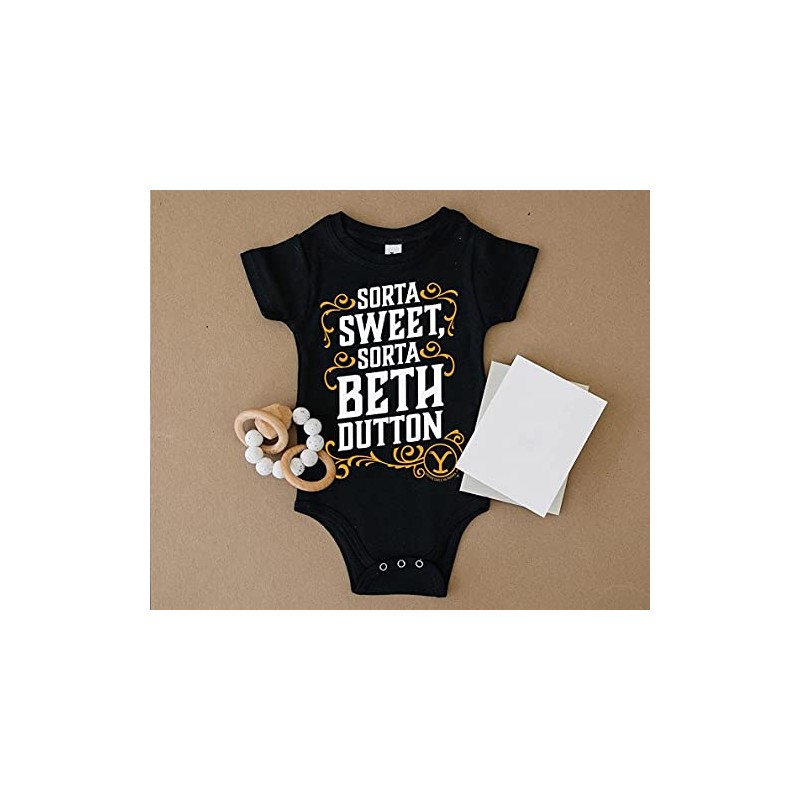 This Yellowstone Sorta Beth Dutton Baby Bodysuit is an adorable addition to your little one's wardrobe. Featuring a design that any Yellowstone fan will appreciate, this Yellowstone baby bodysuit proves that you are never too young to love Yellowstone.