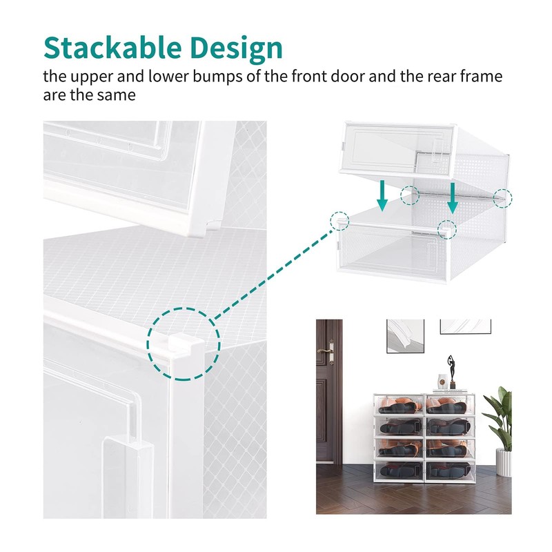 • 【Stackable & Space-Saving】 The shoe boxes can be easily stacked, and the unique top groove ensures they stay securely in place, saving space and keeping your area neat and tidy