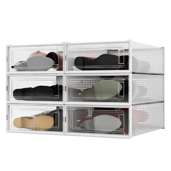 PARANTA 6-Piece Boot and Shoe Storage Box, Stackable Clear Plastic Shoe Box, ...