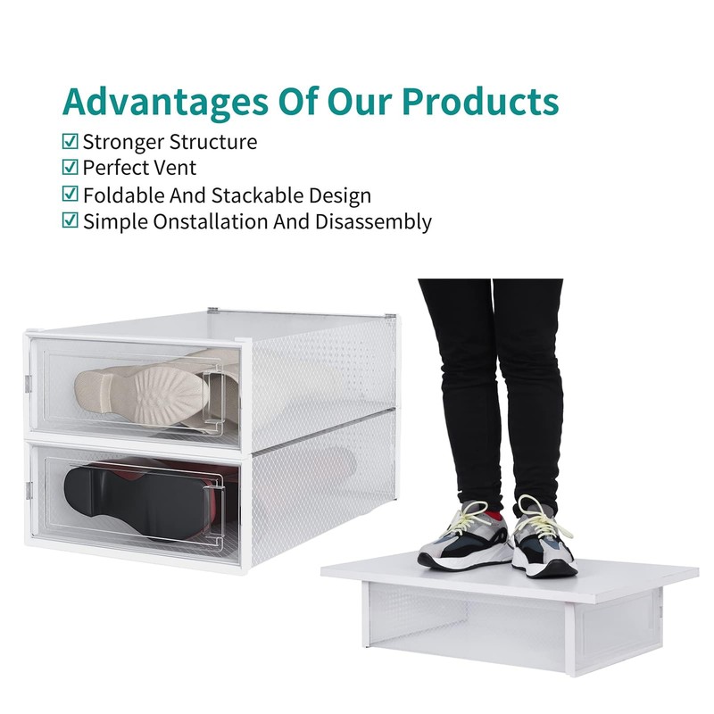 • 【Durable Material】Made from-quality PP material, the shoe box features a combination of soft body and hard front and back frames, ensuring long-lasting durability and reliable protection for your shoes