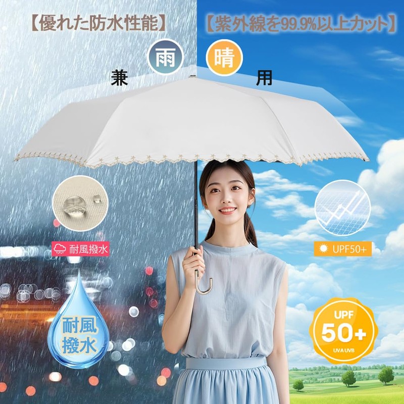 - 【Unique Design】Solid color with lace, embroidery, and ruffles. Elegant and monotone. It also makes a great gift for Mother's Day, birthdays, anniversaries, Christmas, White Day, graduation or a new job, or as a gift for a new job. This folding parasol is a convenient and convenient item for commuting to work or school, watching sports, summer festivals, events, camping, excursions, outdoor activities, travel, etc